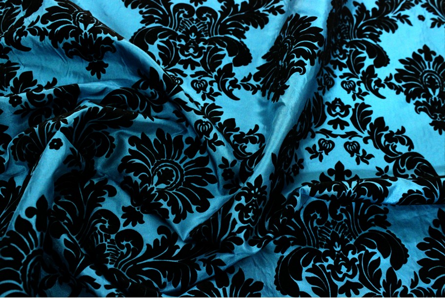 Flocking Damask Taffeta Table Linen – Teal / Black